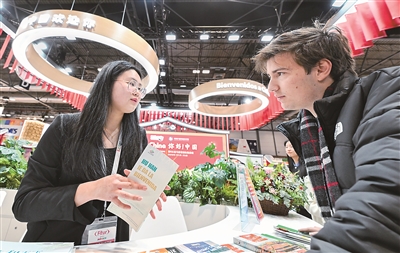 近年来,过境免签政策持续扩容、免税购物政策不断优化、“即买即退”适用商店持续增加……得益于中国日益开放的举措,越来越多外国游客在中国旅游、购物,感受更加开放包容、多元创新的中国。图为1月21日至25日举行的马德里国际旅游展上,参观者在中国展台咨询。 新华社记者 程敏 摄